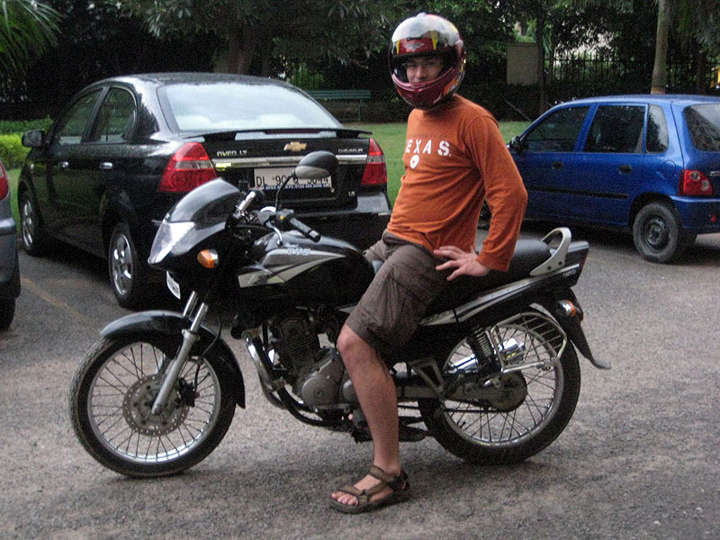 Ponieważ w Indiach nie istnieją w ogóle szkoły jazdy na motorze (!), zrobiłem mały wywiad wśród Hindusów na uczelni i poznałem Varuna, inżyniera zafascynowanego motorami, który był szczęśliwy, że może nauczyć kogoś jeździć na jego ukochanym środku lokomocji. Lekcje odbywały się późnymi wieczorami na uliczkach MDI, najbezpieczniejszych drogach w mieście. Po trzech półgodzinnych lekcjach potrafiłem już płynnie ruszać, manewrować, obsługiwać motor.
