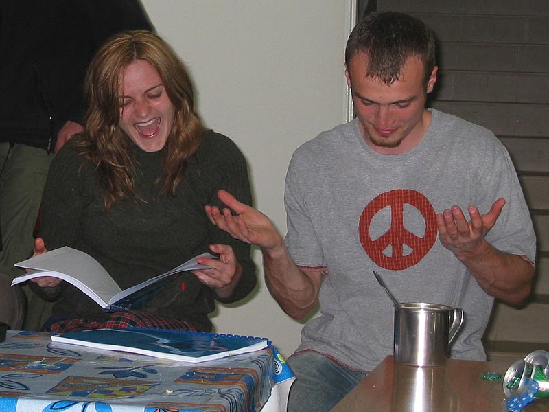 W szkole naszą trójcę (bynajmniej nie świętą) przyjęto królewsko – okrzykami i oklaskami. My takoż resztę – ze śpiewem na ustach przywitaliśmy. Pooglądalibyśmy jeszcze piękne gwiazdy na zewnątrz, ale do takiego towarzystwa nie można było nie dołączyć! Śpiewaliśmy i integrowaliśmy się z „innymi uczelniami” (czytaj SGH, bo Wrocław, Katowice i Kraków nie zdołali się wystarczająco zorganizować) do „samego rana”… to był chyba pierwszy rajd jaki pamiętam, na którym nie zdołałem ani razu zagrać „Czarnego blusa o 4 nad ranem”… mimo, iż miałem 3 szanse :-] No i co! Jakoś udało nam się z SGH dostroić! hihi!